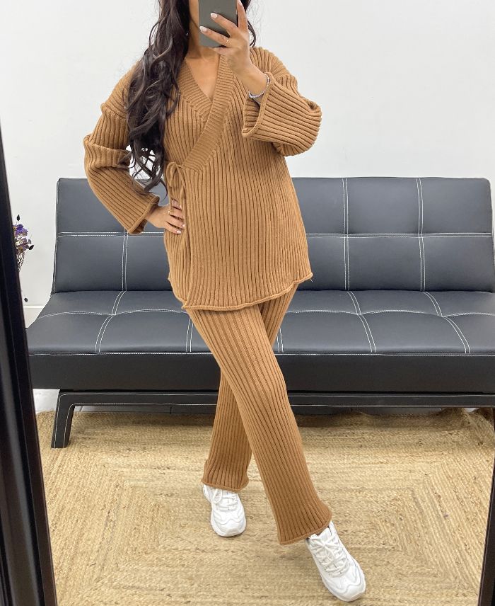cliquez-iciWRAP CARDIGAN SWEATER + PANTS SET AW816 CAMEL