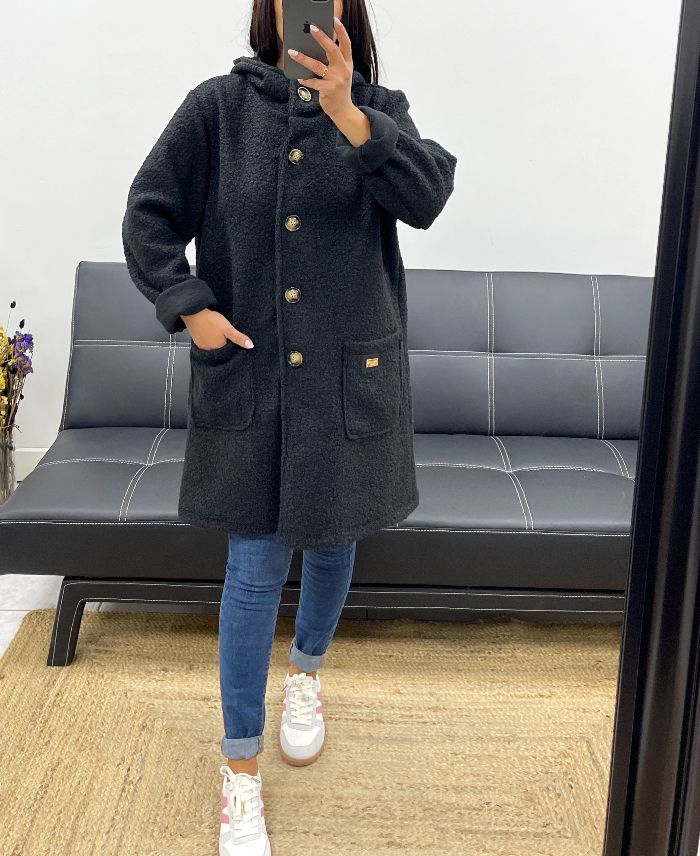 MOUMOUTE JACKET WITH BUTTONS, POCKETS AND HOOD, AH250982 BLACK