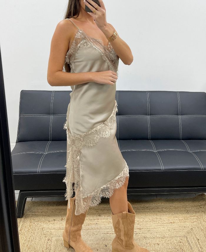 BEIGE LACE SATIN TOP AH36283