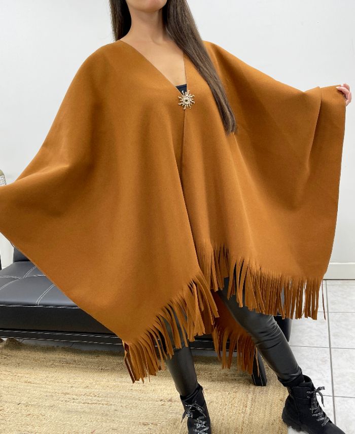 LARGE SIZE FRINGED CAPE ACCESSORY AH36322 CAMEL