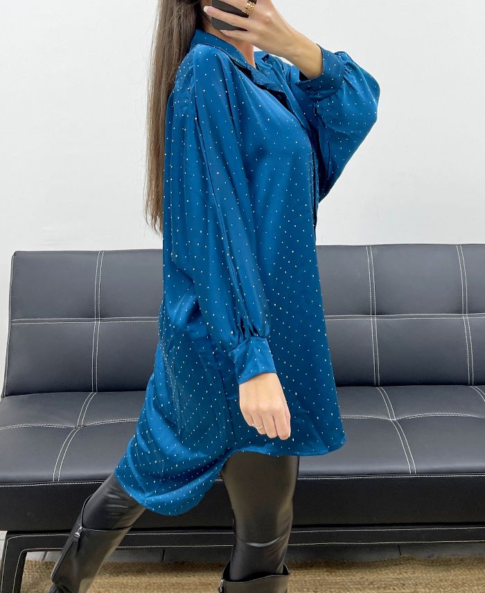 PLUS SIZE STUDDED SATIN TUNIC DRESS AH36386 BLUE