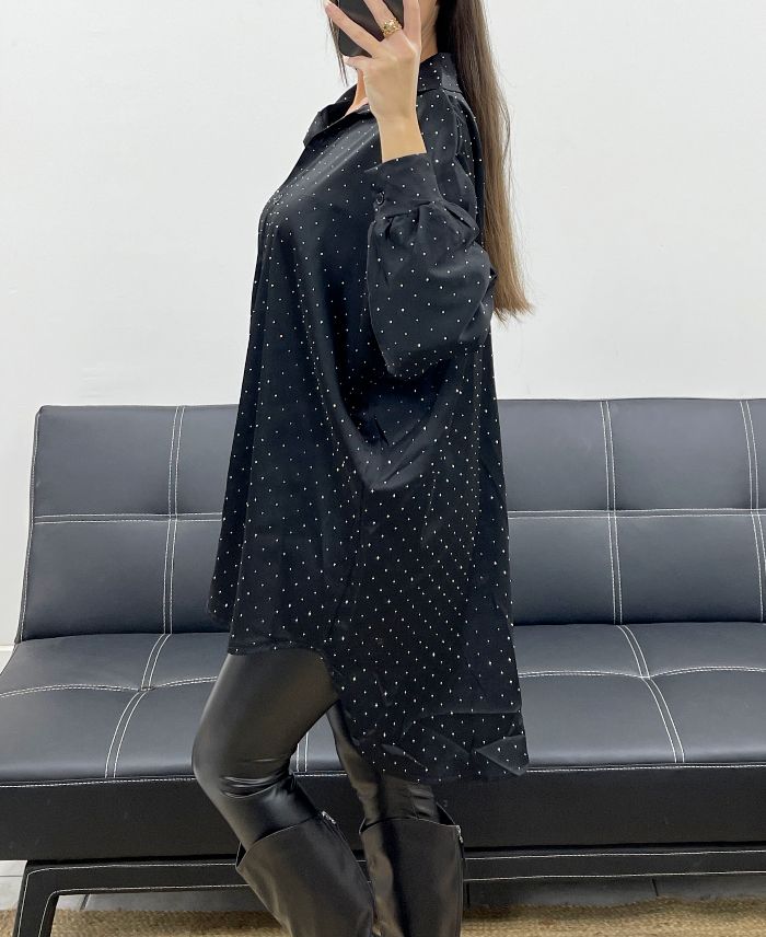 PLUS SIZE BLACK STUDDED SATIN TUNIC DRESS AH36386