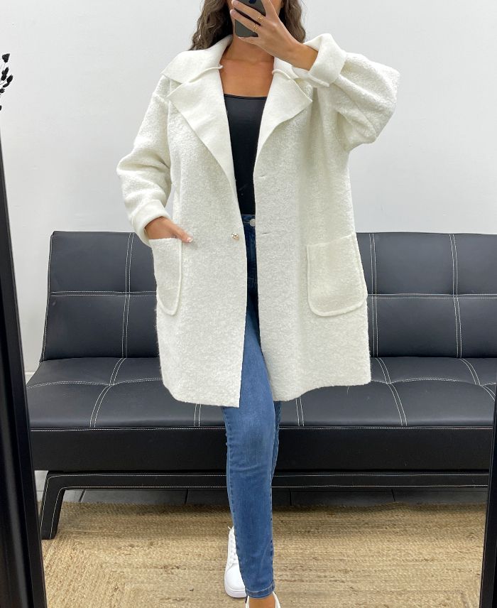 LOOSE WOOL JACKET WITH 2 POCKETS AH2555024 WHITE