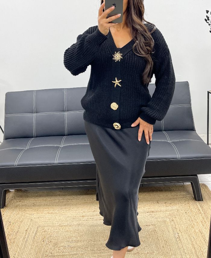 FANCY BUTTON CARDIGAN AH255054 BLACK