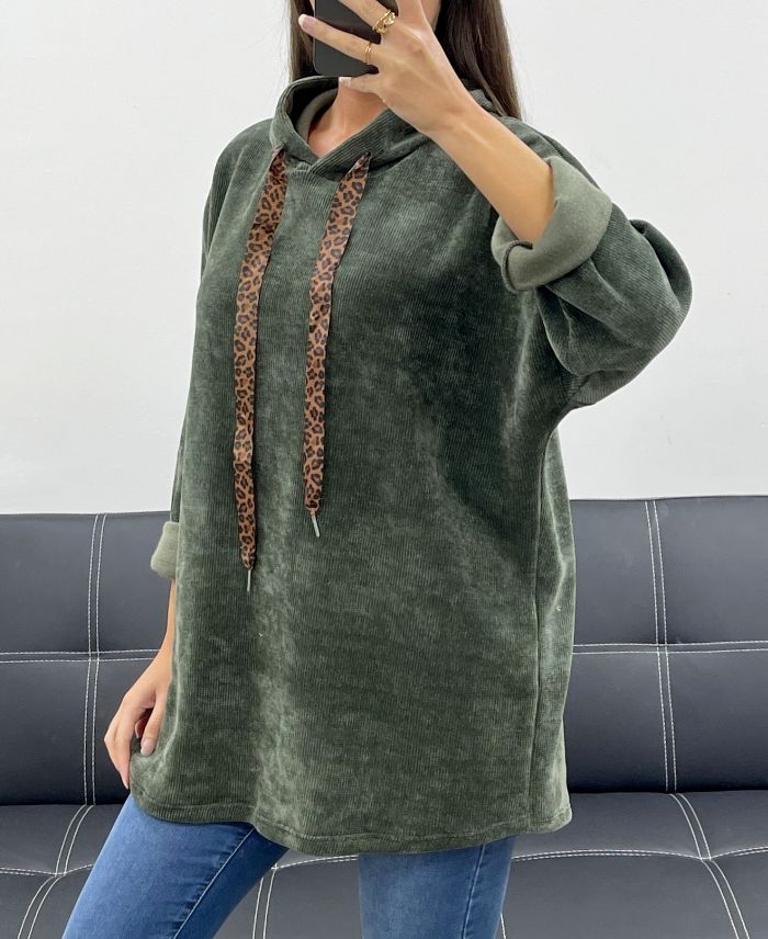 LEOPARD VELVET AH255197 KHAKI HOODIE