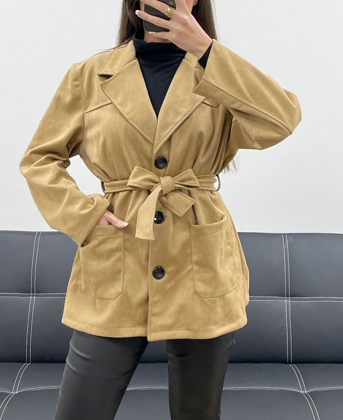 2-POCKET SUEDE JACKET + AH250631 BELT CAMEL