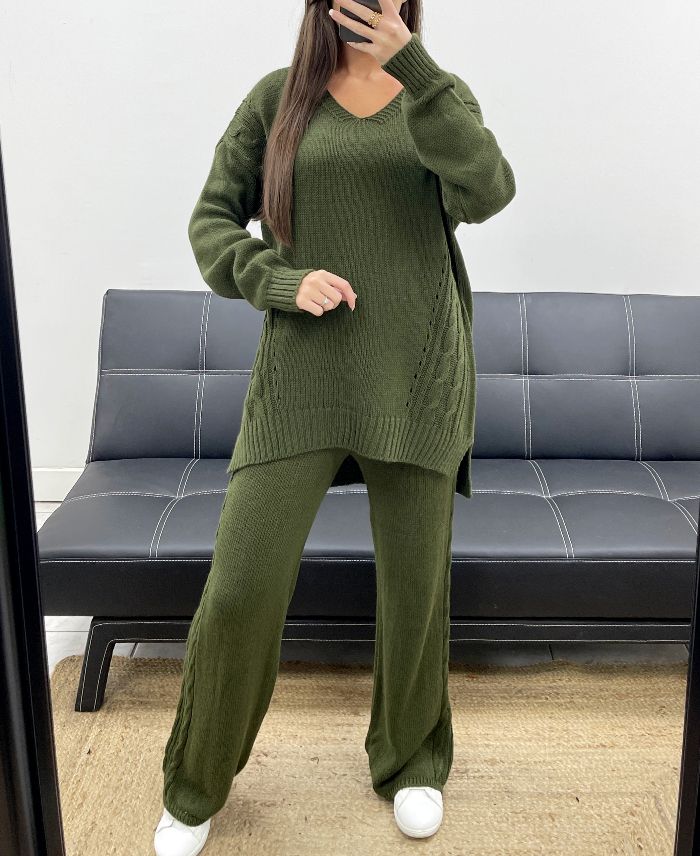 PLUS SIZE SWEATER KNIT SET + PANTS AH250721 KHAKI
