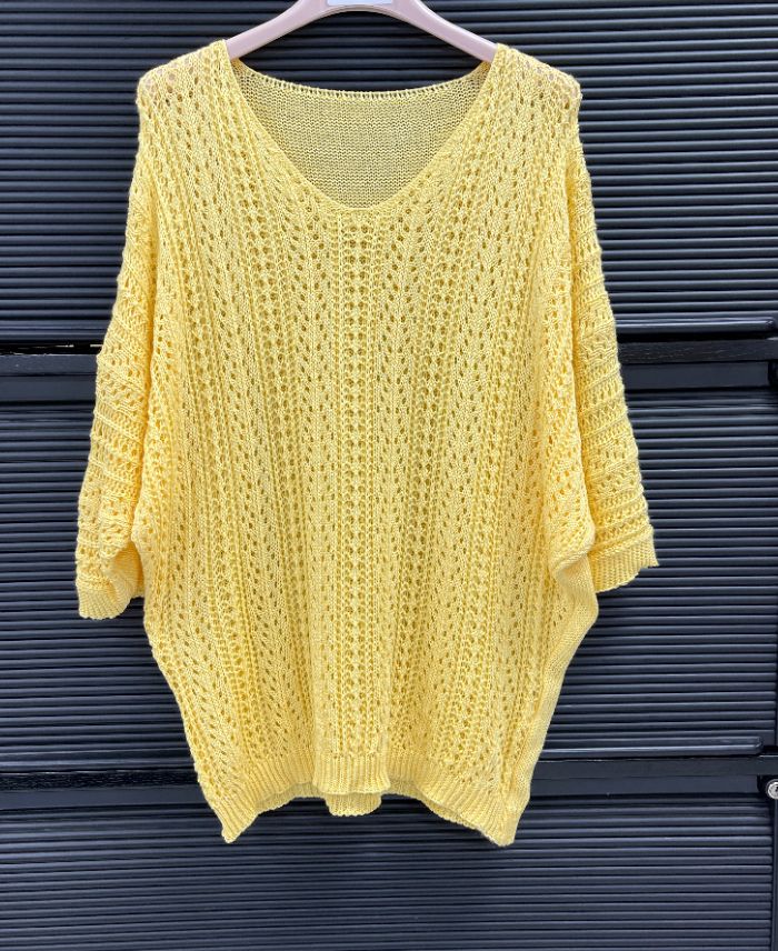 YELLOW PE26802 CROCHET STYLE SWEATER