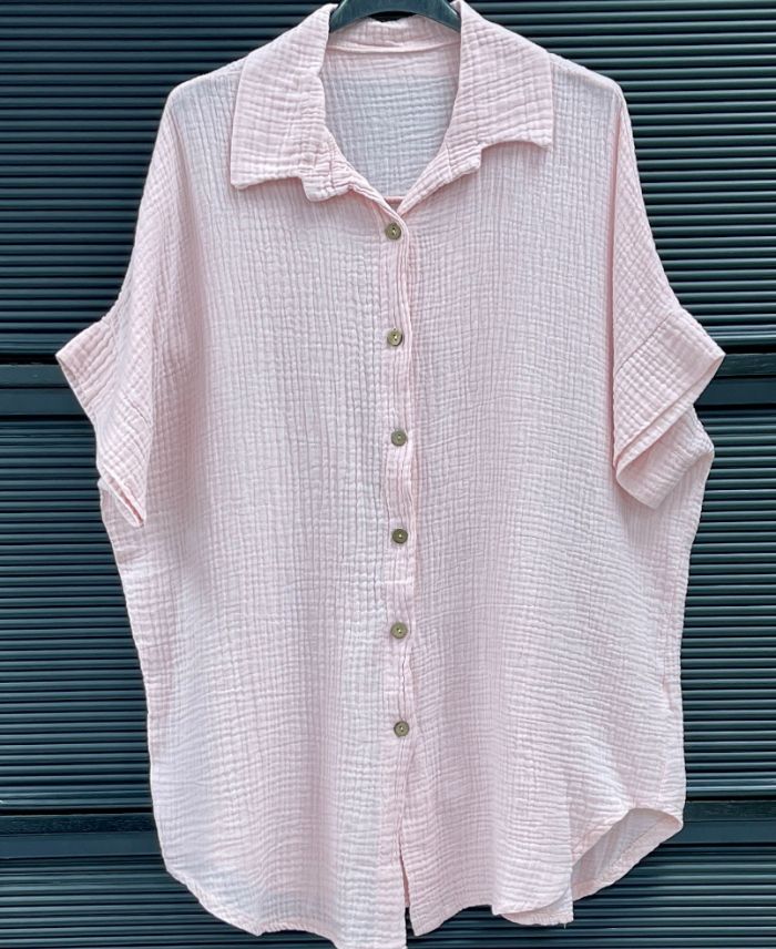 COTTON PE26849 GAUZE SHIRT PINK