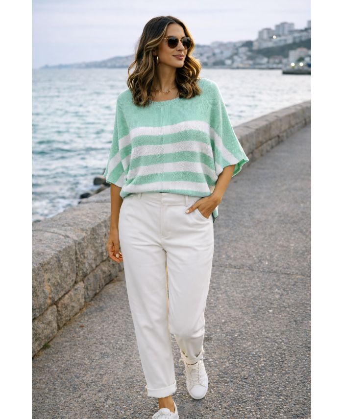 CHIC STRIPED PE260528 PASTEL GREEN SWEATER