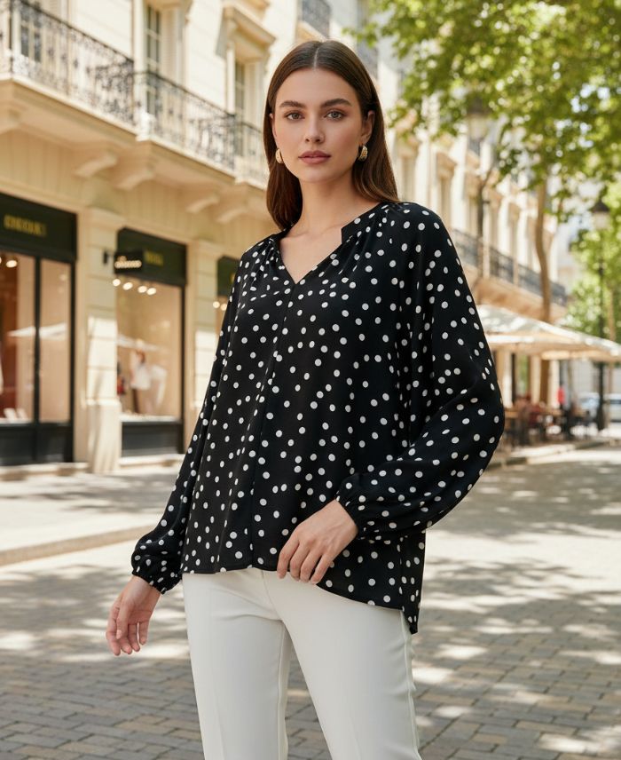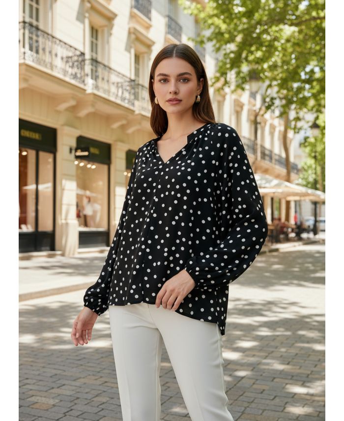 POLKA DOT PRINT BLOUSE SS2095 BLACK