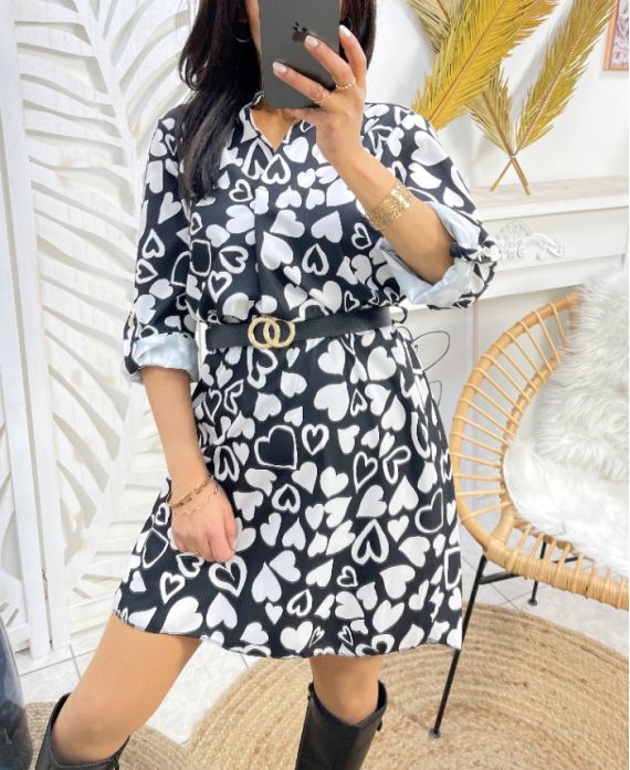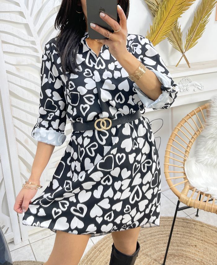 PRINTED TUNIC DRESS + BELT OFFERED PE07 BLACK