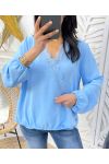 DRAPED BLOUSE LACE PE77 SKY BLUE