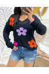 COLORFUL FLOWERS KNIT SWEATER SS460 BLACK