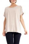 T-SHIRT STUDDED SHOULDERS S9192 BEIGE