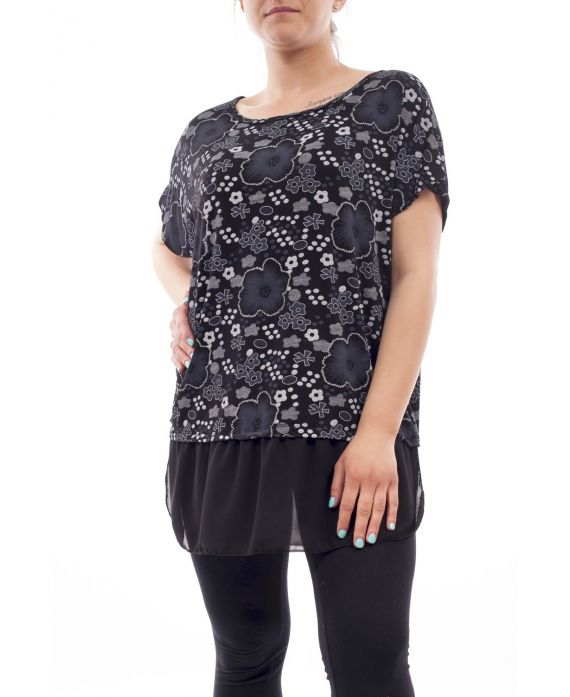 PLUS SIZE T-SHIRT BI-MATERIAL GT1090 BLACK