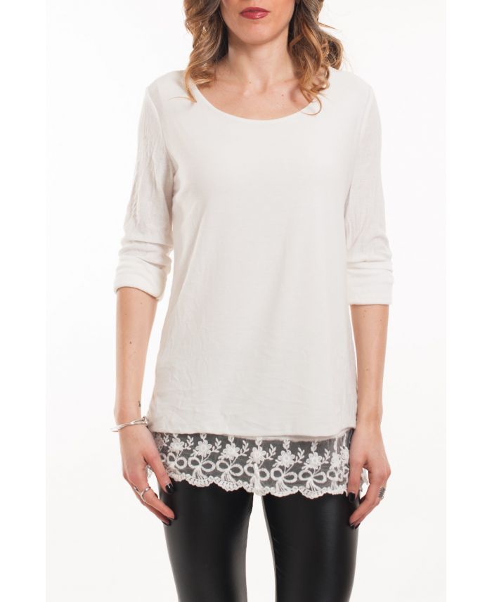 cliquez-iciT-SHIRT DE SUPERPOSICIÓN DE ENCAJE 5051 BLANCO