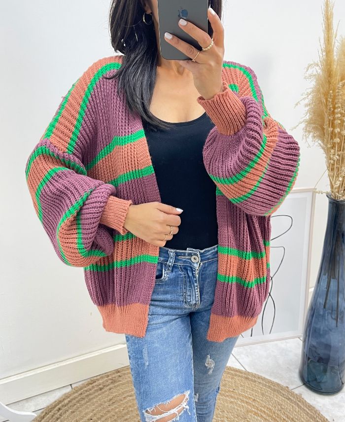 CHALECO A RAYAS MULTICOLOR AH497 TERRACOTA