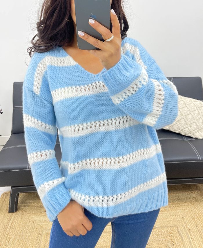 JERSEY DE RAYAS SUAVES AH250045 AZUL CLARO