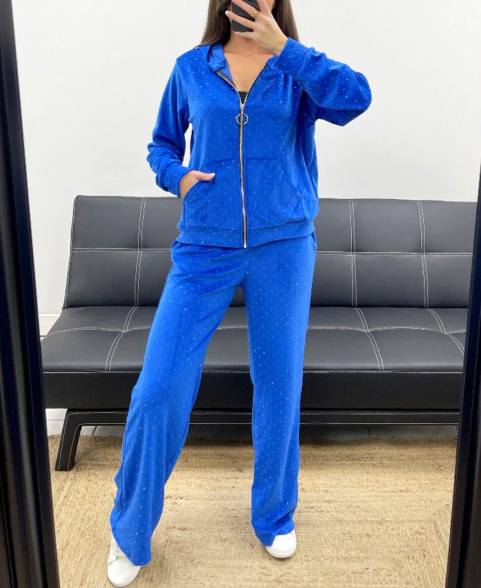CONJUNTO CHALECO CON CAPUCHA + PANTALÓN DE 2 BOLSILLOS TERCIOPELO CON TACHUELAS AH36382 AZUL REAL