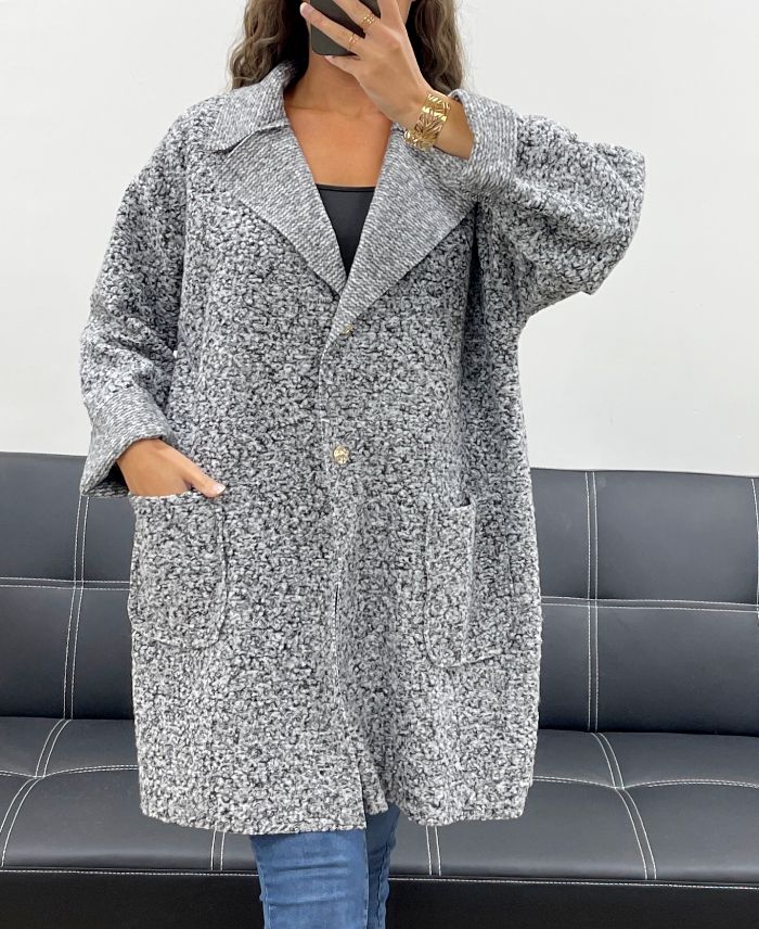 CHAQUETA HOLGADA DE LANA CON 2 BOLSILLOS AH2555024 JASPEADO
