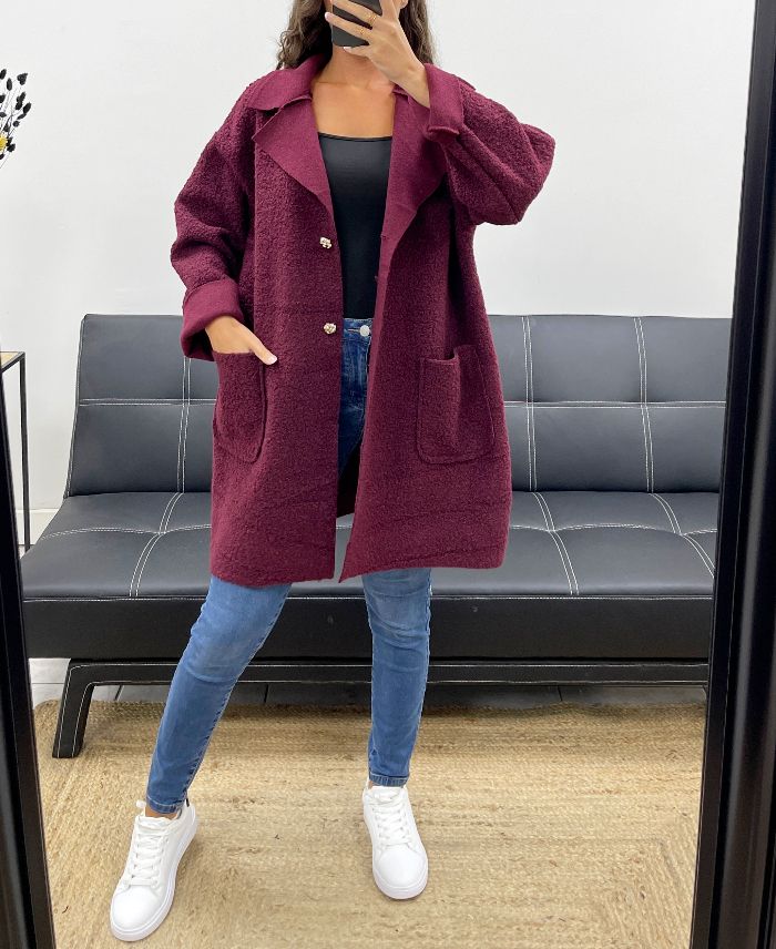 CHAQUETA DE LANA HOLGADA CON 2 BOLSILLOS AH2555024 BURDEOS
