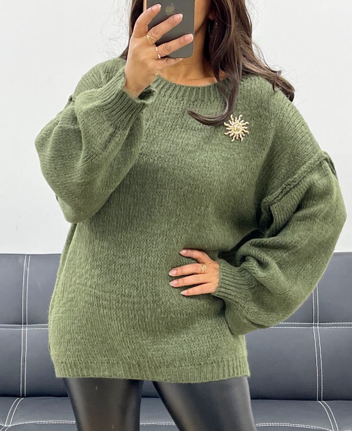 SUÉTER OVERSIZE BROCHE DE SOL AH255111 CAQUI