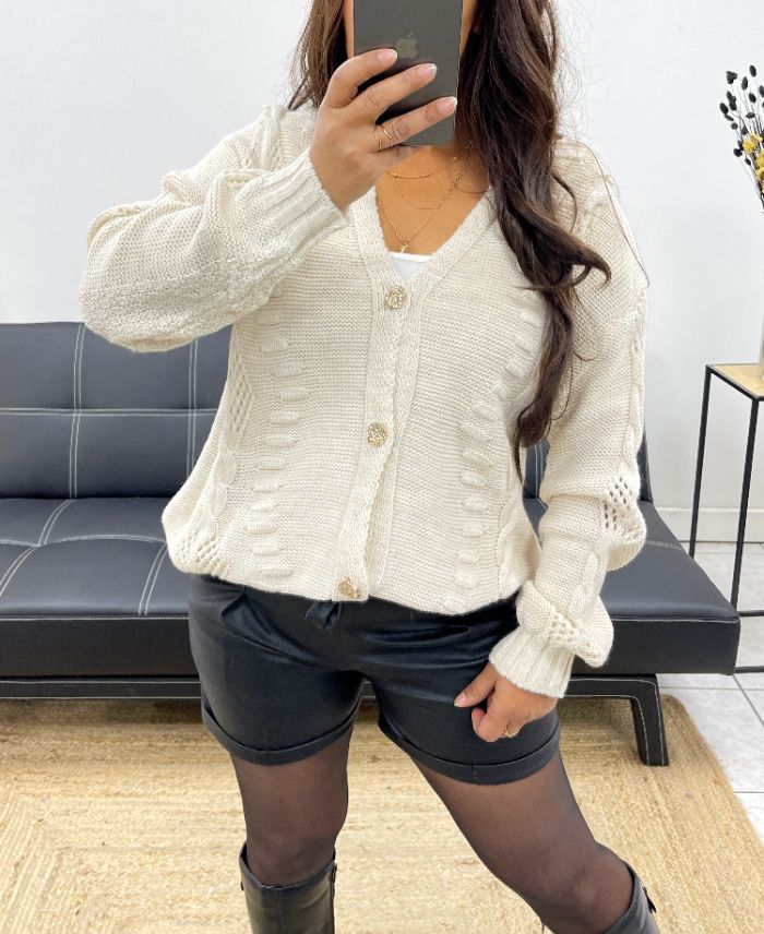 CÁRDIGAN DE PUNTO CON BOTONES AH255022 BEIGE