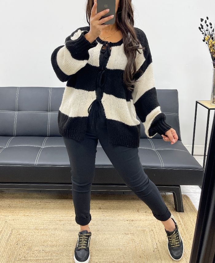 SUÉTER DE RAYAS SUAVES AH255061 NEGRO