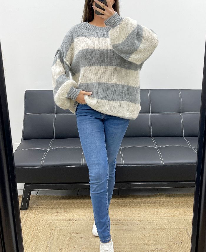 JERSEY OVERSIZE RAYAS AH255212 GRIS