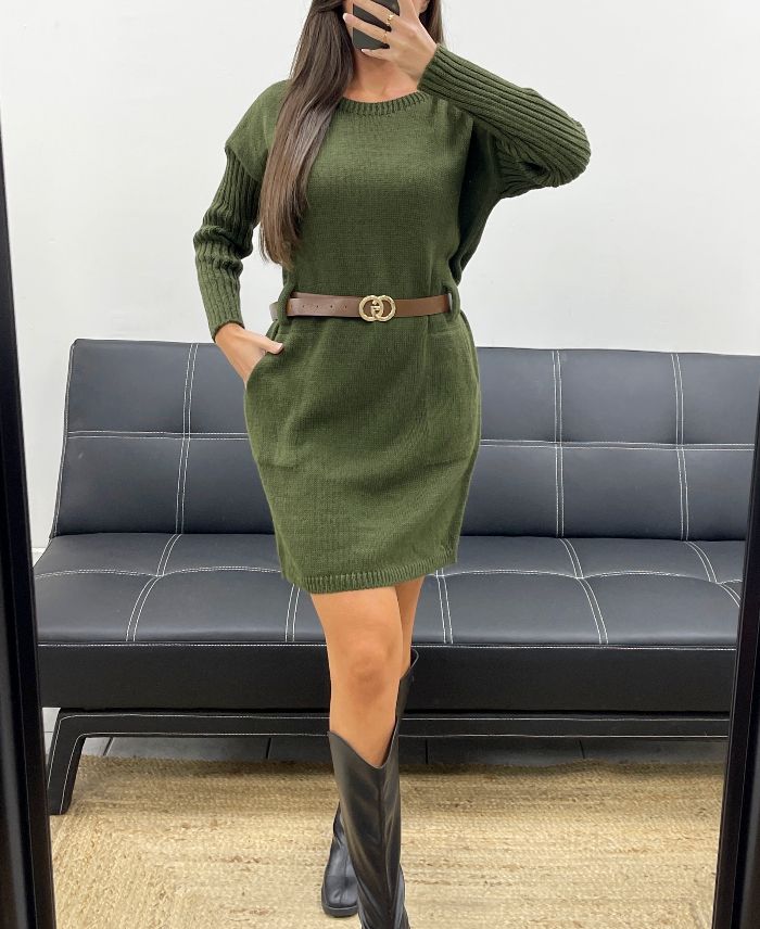VESTIDO - JERSEY DE PUNTO + CINTURÓN AH255213 KAKI