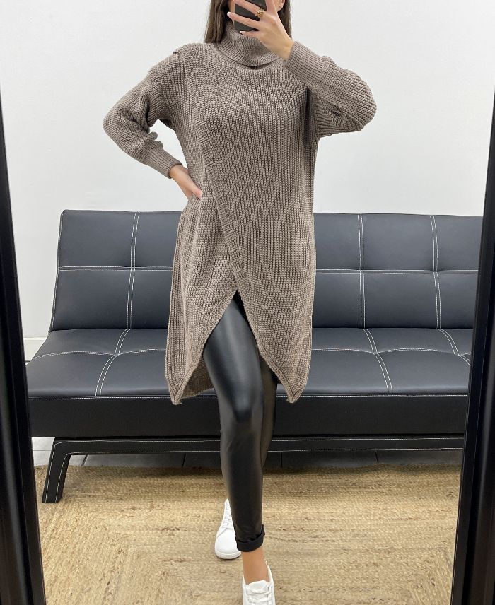 SUÉTER LARGO DRAPEADO AH250609 TAUPE