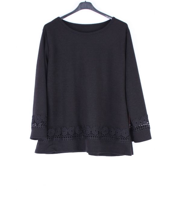 DE GRAN TAMAÑO SUÉTER BÁSICO DE ENCAJE 0372 NEGRO