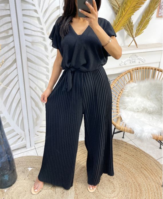 PANTALÓN PLISADO COMBINADO PE1022 NEGRO