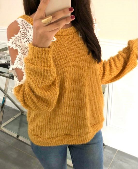 SUÉTER DE HOMBRO ENCAJE 9168 MOSTAZA