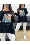 CAMISETA DE OSITO DE PELUCHE DE ALGODÓN SUELTO PE0198-3 NEGRO