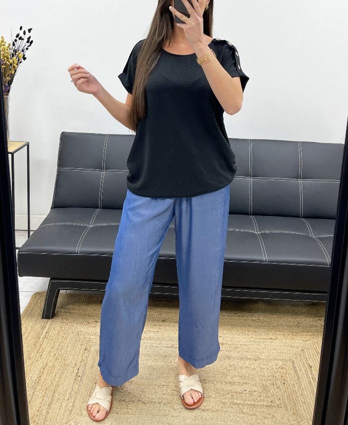 TOP DE HOMBROS FLUIDOS CON BOTONES PE1214 NEGRO