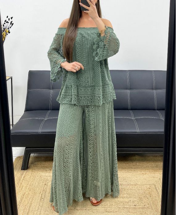 PANTALÓN DE ENCAJE "BOHEMIAN COLLECTION" FORRADO PE2273 KAKI