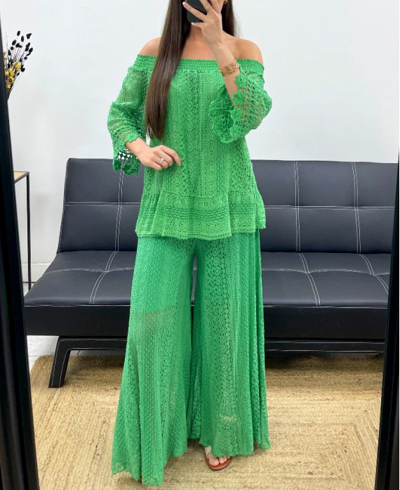 PANTALÓN DE ENCAJE "BOHEMIAN COLLECTION" FORRADO PE2273 VERDE
