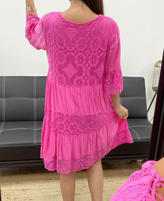 VESTIDO DE ENCAJE CON ESCOTE EN V "BOHEMIAN COLLECTION" PE2382 FUSHIA