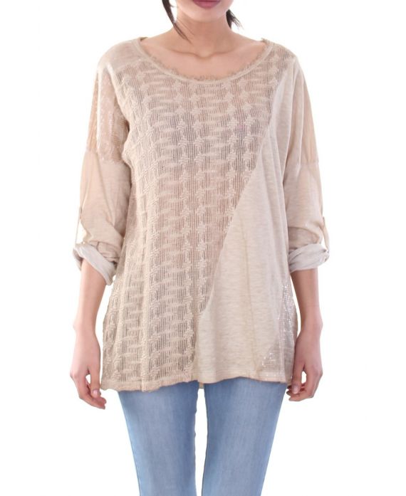 T-SHIRT de la MEZCLA de CRUDO BEIGE S7042