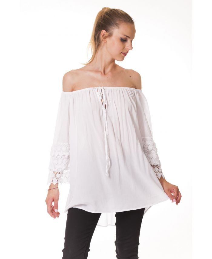 TÚNICA con MANGAS de ENCAJE S9326 BLANCO