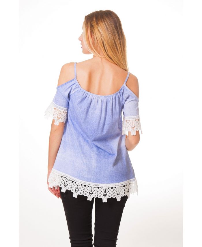 TOP de ENCAJE de los HOMBROS DENUDEES S9339 LUZ AZUL