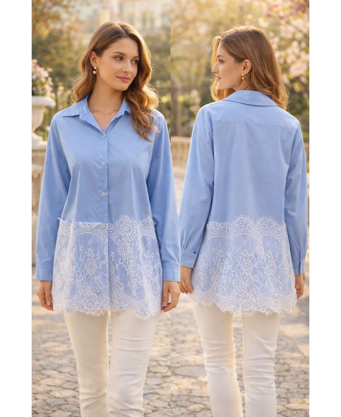 CAMISA DE ENCAJE PE2152 AZUL CELESTE