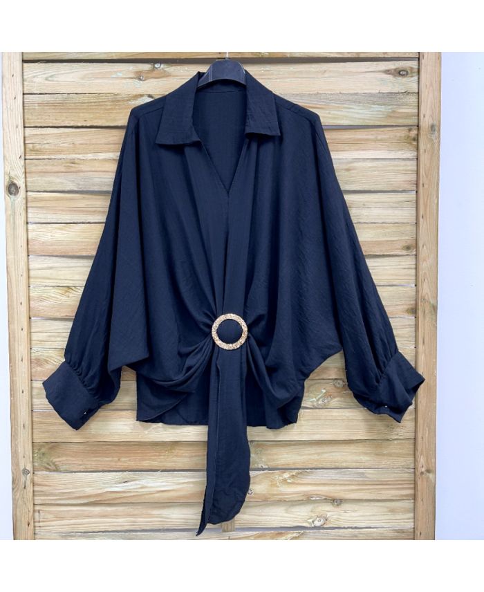 BLUSA DE ACCESORIOS CON HEBILLA PE2408 NEGRA