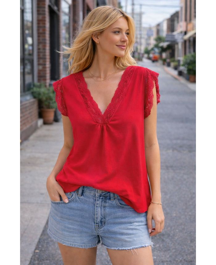 CAMISOLA TOP OVERSIZE ENCAJE PE2463 ROJO