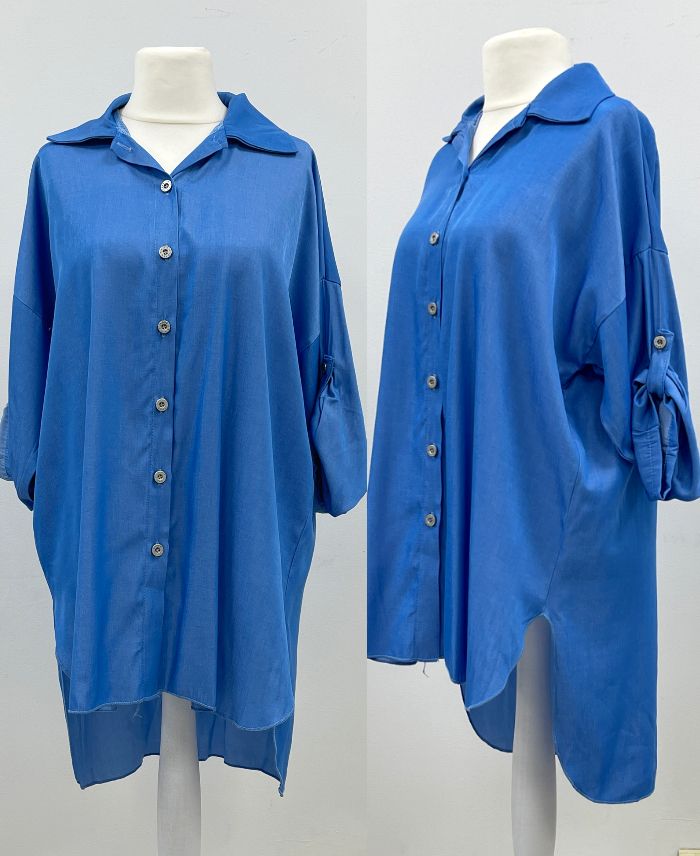 TENCEL CAMISA LARGA OVERSIZE PE2490 AZUL CLARO