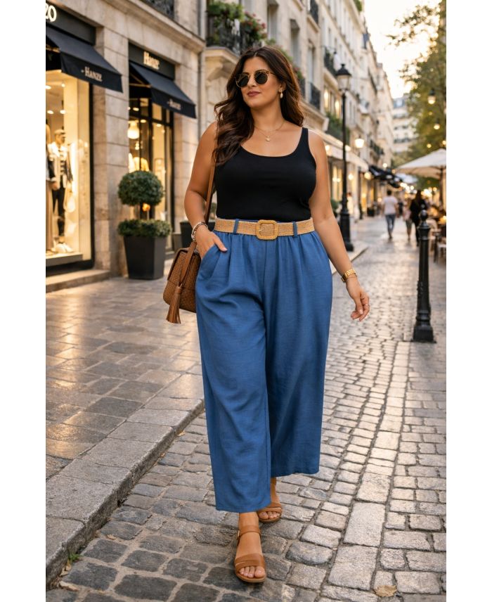PANTALONES TALLA GRANDE, CINTURÓN DE 2 BOLSILLOS, PE26809 VAQUEOS AZULES