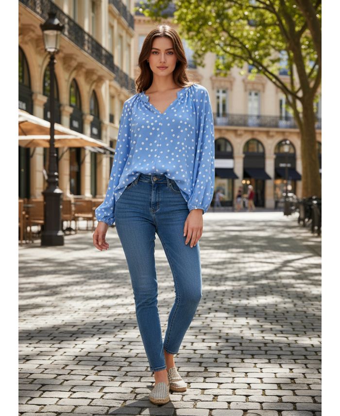 BLUSA CON ESTAMPADO DE LUNARES SS2095 AZUL CIELO