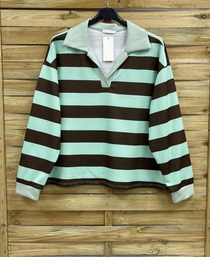 CAMISETA POLO DE RAYAS PE2258 VERDE